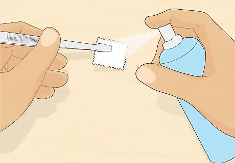 Handle stamps with stamp tongs. Find stamp tongs online or at a hobby store, and use them instead of your fingers, to avoid causing damage from oils or moisture. These are often called tweezers because they so resemble them, but are weaker and smoother to avoid damaging the stamp. Thin, rounded tips make it easy to slide underneath a stamp, while sharp points should be avoided due to the possibility of tears.