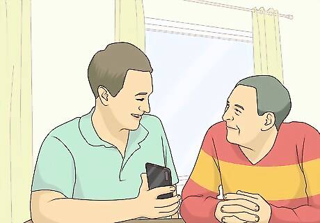 Keep in contact regularly. Your parent probably loves talking to you, so don’t be shy! Stop by for weekly visits, call on a regular basis, or use a video chat platform if you’re far away. If your parent or parents feel uncomfortable using technology, ask someone who lives nearby to help them set up their phone or computer.