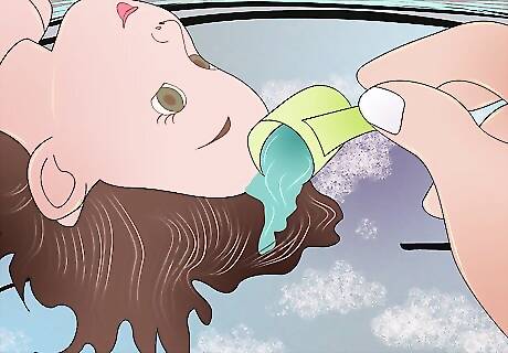 Cover the doll’s hair in fabric softener. If any portion of the hair is not covered by the liquid, use your ladle or cup to pour additional fabric softener onto the hair so every strand is thoroughly coated.