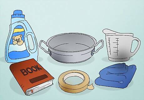 Collect the following materials. In order to effectively wash your American Girl doll’s hair, you will need the following supplies, all of which you should be able to locate within your house: A large, shallow casserole dish. Non-concentrated fabric softener (unscented, unless you are actively trying to disguise a bad smell in the doll’s hair.) If you are unable to find non-concentrated fabric softener, add water to dilute the concentration. A book, or something to elevate your doll during the cleaning process. A towel. A ladle or measuring cup. Masking tape.