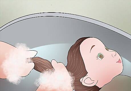 Swaddle the doll in a clean, dry towel. The only exposed parts of the doll should be her face and hair. Be aware that repeated exposure of your doll’s body to moisture may result in mold damage.