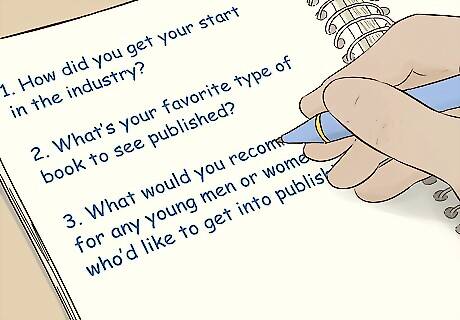 Write out 6–8 questions to ask during the interview. Plan to have your questions on a sheet of paper with you when you walk into the interview room. It’s fine if you spontaneously come up with a handful of follow-up questions over the course of the interview, but it’s important that the main questions are composed before you sit down with the subject. For example, if you’re interviewing a publishing specialist, write questions like: “How did you get your start in the industry?” “What’s your favorite type of book to see published?” “What would you recommend for any young men or women who’d like to get into publishing?”