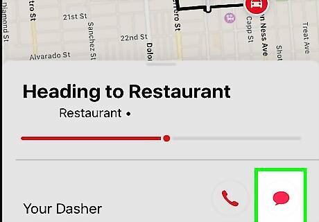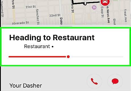 Tap your order. The status of your order will appear. If a driver has already been assigned to your order, you’ll either see a message that says ″Heading to Restaurant″ or ″Your Dasher is on the way,″ as well as a map displaying your order’s current location. The driver’s name appears below the map. If there is no driver name, the order is not yet assigned to a driver.