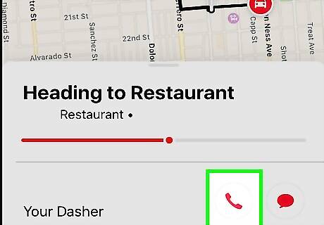 Tap the phone receiver icon to call your driver. It’s below the status message toward the bottom of the page, right next to the driver’s name. If your driver does not answer your call, they may be driving or at the restaurant.