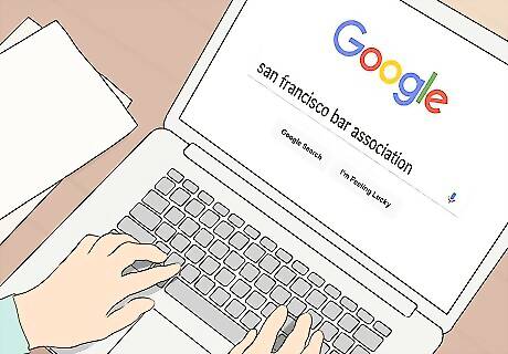 Use a bar referral service to get matched with an attorney. Do an internet search for the name of your city or town and the words "bar association" to find the website of your local bar association. On the bar association's website, you'll often find a tab or link for a referral service. To use the referral service, you typically provide some basic information about the kind of legal issue you need help with. You may also be asked questions about the type of representation you want. The service will then produce the names of a few attorneys in your area who could potentially represent you. Some bar associations have specialty divisions. These attorneys specialize in particular types of cases. For example, you might have attorneys who specialize in family law or in estate planning. Typically, these attorneys take additional courses to be certified as specialists in that particular area.Tip: The benefit of using a bar association referral service is that you can be assured that the attorneys recommended are licensed and in good standing with the bar that referred them.