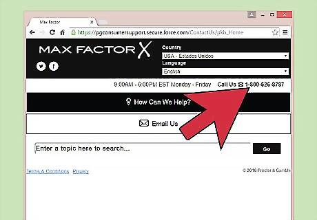 Call Max Factor. When you have your country picked out, notice the contact number provided by Max Factor. For example, the number for customers calling from the United States is 1-800-526-8787. Max Factor is available to take calls between the hours of 9 a.m. and 6 p.m EST Monday through Friday. Your call will be directed to Max Factor’s customer service department, and you will be connected with a live representative.