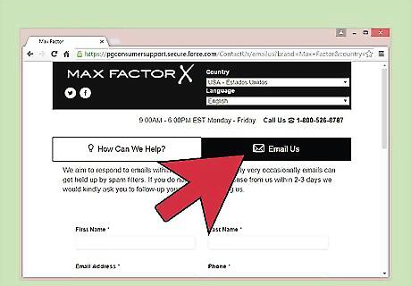 Click on “Email Us.” By clicking on the “Email Us” tab, you will be redirected to a page that asks you to fill out some personal information like your name, email, phone number, and reason for contacting Max Factor. Max Factor states that they try to respond to emails within 48 hours, but sometimes it could take longer due to spam filters in their emailing system. For example, the reason you’re writing to Max Factor could be to review a product, ask a question, or inquire about coupons and promotions. In order to organize responses from customers, the reason your writing probably helps sort out their incoming contact requests.