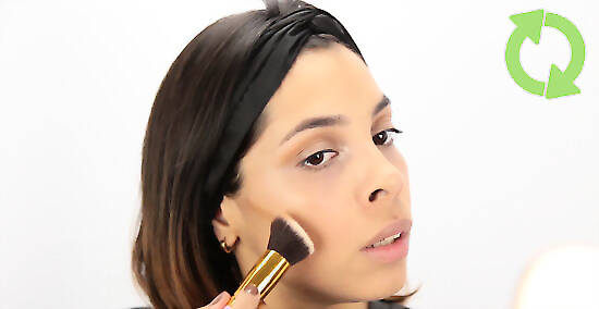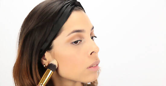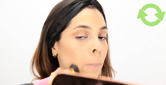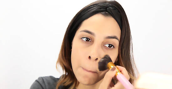 Start by adding a contour line with bronzer. Bronzer should be used to add two lines to either cheekbone. Use your thin tipped brush so you can draw the lines precisely. Start your line near where your hairline and ear meet. Following the natural direction of your cheek bone, draw a line angling downward. You should draw your line about an inch and a half in length.