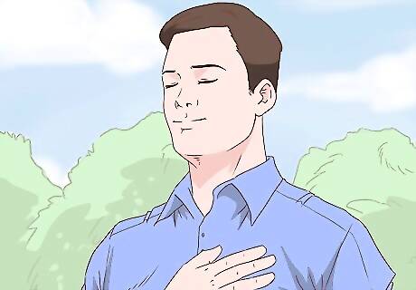 Breathe deeply. When in the middle of a panic attack, it’s likely you will struggle to breathe naturally. The best way to work through a panic attack is to turn your attention to your breathing. Focusing on your breath and learning to deepen it will help you relax and work through the panic attack. Breath awareness can end a panic attack and decrease their frequency overall. Take a moment to notice the sensation of your breath entering your nostrils or mouth as it travels down your airway into your lungs. After a few breaths, try to notice any other sensations that might accompany your breathing. Becoming more aware of the subtle sensations in your body can help you influence how your body responds to emotional spikes. First, practice deep breathing exercises when you are calm and not in panic. By practicing in safe and calm environments, you can be more prepared when experiencing a panic attack or intense anxiety. Practicing deep breathing will help you relax and can help you work through any future panic attacks.