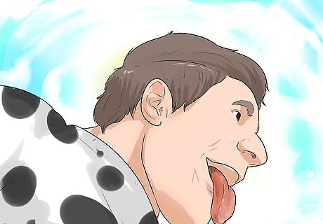 Communicate like a dog. Dogs can’t tell you what they want and what they are feeling, so they use a lot of body language to communicate with people. Study a dog’s body language and mimic what dogs do to communicate. When someone is speaking to you, tilt your head to one side. Wag your tail when you’re happy. Dodge out of the way when you are mad at someone who is about to touch you. Whine for attention.