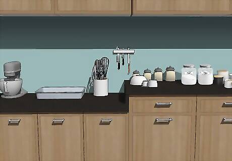 Think about how much space you'll need. When you're thinking about a baking area, get out all your baking supplies. You can't design a space until you know exactly how much space you'll need to store everything. Having the visual can help you determine the size of your baking station.