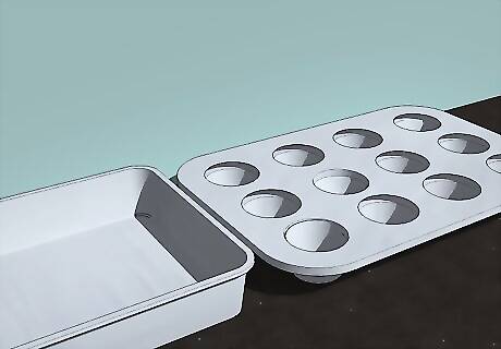 Keep the baking pans in this area. While you may be tempted to keep all the pans in your kitchen in one place, consider keeping your main baking pans and pie pans in your baking area. That way, you can reach up or down and grab what you need. You should also have cooling racks in this area.