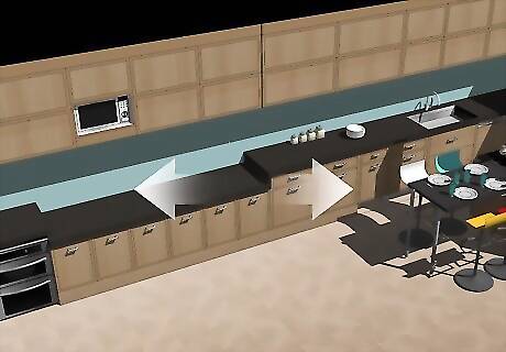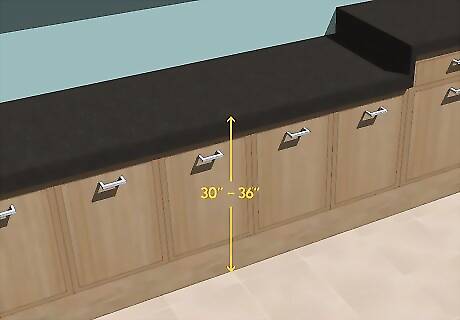 Get the right height. For a baking station, having the work area below counter height can be helpful, as it can help you get the right leverage when rolling and cutting baked goods. If you can't have a lower work area, try adding a small, sturdy step stool to the area, so you can raise yourself higher. Generally, a good height is between 30 inches and 36 inches from the floor, though it may differ depending on how tall you are.