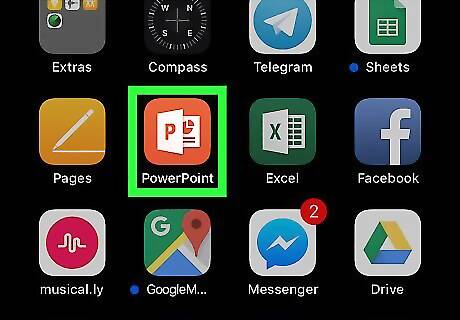 Open the PowerPoint app on your iPhone or iPad. The Microsoft PowerPoint app looks like a "P" in an orange icon on your home screen.