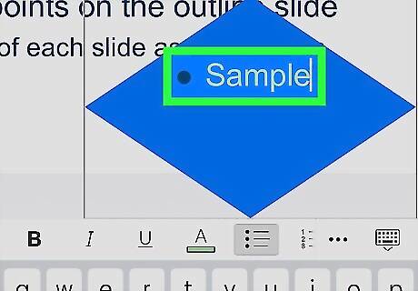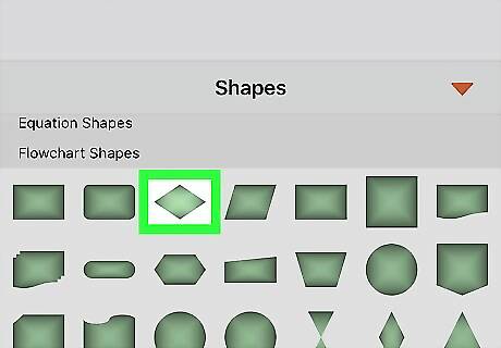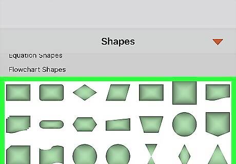 Tap the Shapes icon on the bottom-toolbar. This button looks like a white circle and a black square on the toolbar at the bottom of your screen. It will open a menu of all the shapes you can insert. If you don't see the Shapes icon, swipe left on the toolbar to see all the icons.