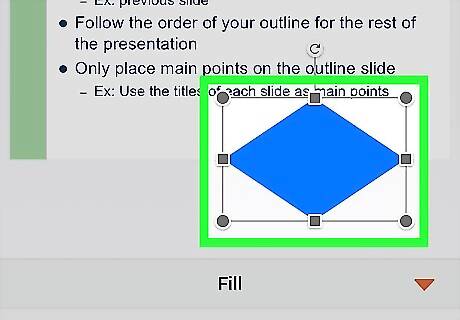 Drag and position your shape in the slide. You can move the shape around your slide by tapping and dragging.