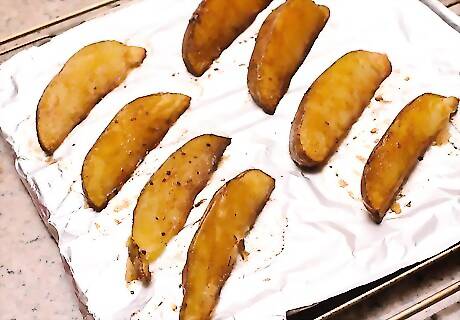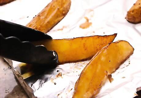 Turn the potatoes over so that the other side can bake. Wait another 15 minutes.