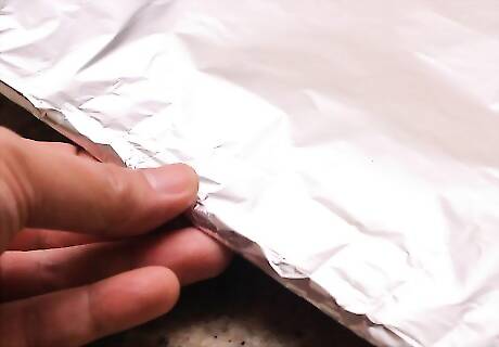 Cover the tray in foil. You need to this so that the food doesn't stick. Add the potatoes into the tray.