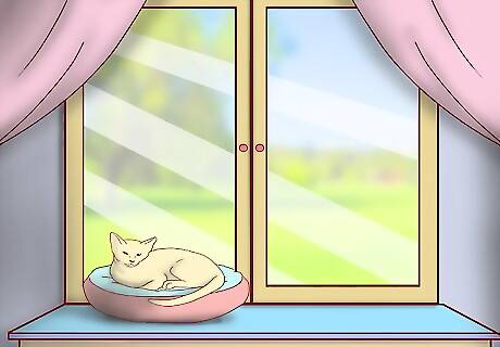 Hang a cat bed near a window. Creating more space for your cat can be as simple as hanging a window bed. If a simple perch isn’t comfortable enough for your kitty, you can purchase a cat bed that is specifically designed to hang under a window. The bed will allow your cat to nap and relax in the sun without stepping outside.