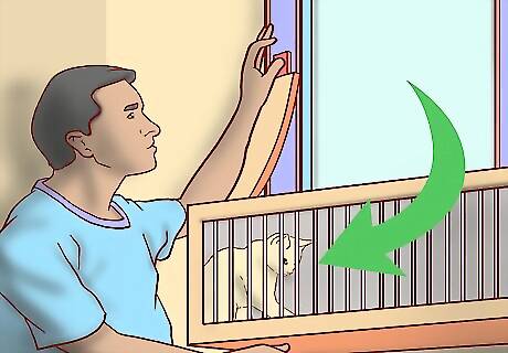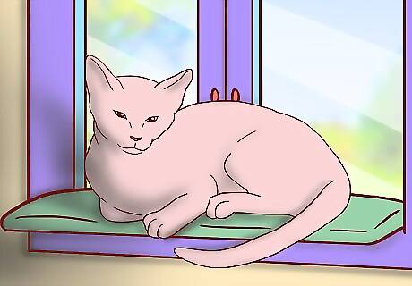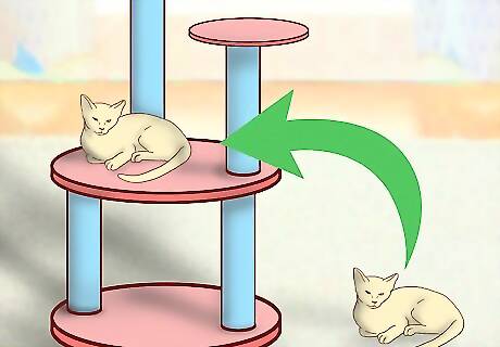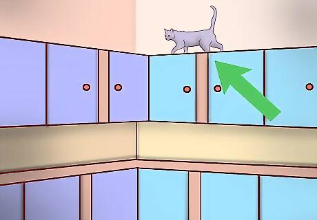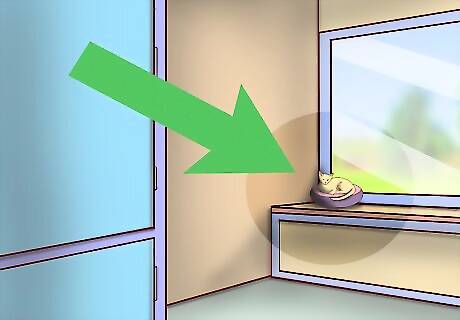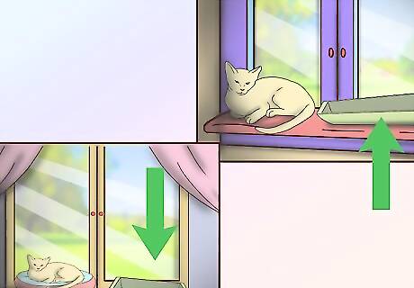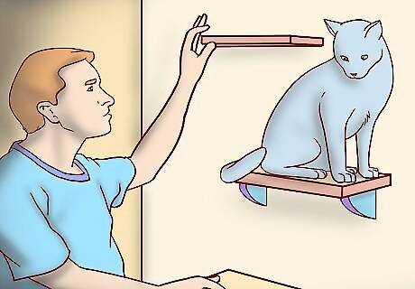 Give your cat a window perch. You can create more space for your cat by hanging a window perch for your feline friend. This can be as simple as hanging a sturdy shelf under the windowsill or positioning a set of shelves in front of a window. You can also purchase a window perch for your cat.