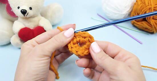 Form a ring. Work six single crochets into the second chain from the hook. This should form your first round. Note that the second chain from the hook is also the first chain you created.