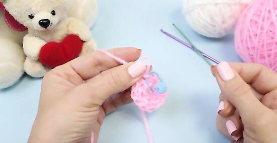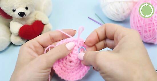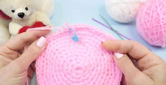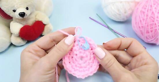 Work additional single crochets for the fifth round. Make one single crochet in each of the first three stitches of the previous round. Afterward, make two single crochets into the fourth stitch of the previous round. Repeat this pattern until you reach the end of your round. You should make a total of 30 single crochets for this round. Mark the end of round five with your stitch marker.