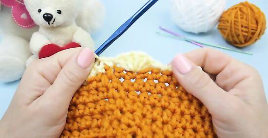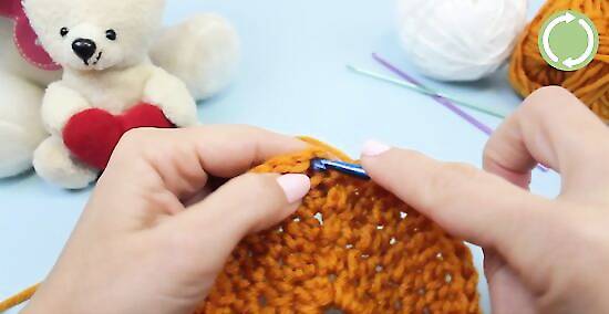 Make seven more rows. Repeat the same pattern used in the previous round for rows 7 through 13. Chain two, then half double crochet once into each of the next 37 stitches. Each round should have 38 stitches in it.
