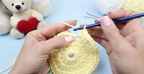 Alternate half double crochets for the third round. Chain two and make one half double crochet into the same stitch. Half double crochet once into the next stitch, then twice into the stitch after that. Repeat this alternating pattern until you reach the end of your round. Join the last and first stitches with a slip stitch. You should have 30 stitches at the end of this round.