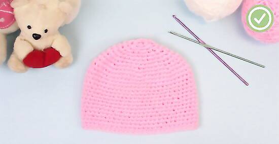 Tie off the yarn. Cut the yarn, leaving a 2 inch (5 cm) tail. Pull it through the loop on your hook and tighten it to form a knot. Weave in the remaining tail to hide it and complete the baby hat.