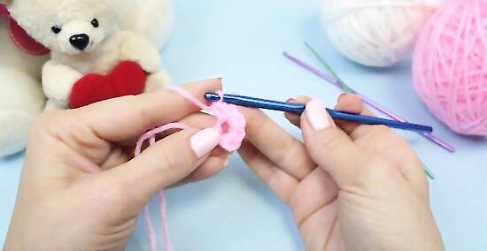 Chain four. Make four chain stitches from the loop of yarn on your hook.