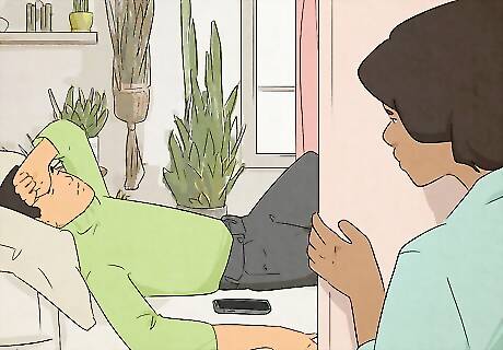 Notice if they have a loss interest. Losing interest in things that used to get them excited is a classic sign of depression. Watch their behavior and notice if they start replying “no” frequently to activities that they used to love, as well as acting listless and bored most of the time. These are usually things like hobbies and sports. People who are listless and have no interest in anything can also be lethargic, not wanting to move or do physical activity.