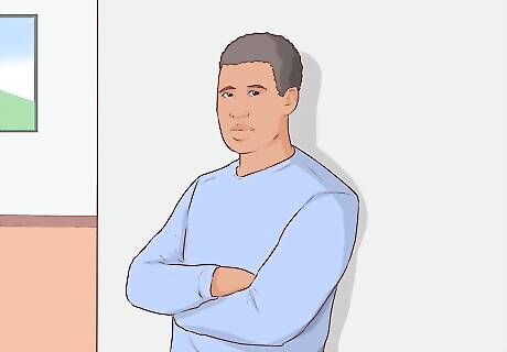 Use a grounding exercise to help you feel calm. Grounding exercises can help you to feel more present and connected with your surroundings, which is important if you begin to feel panicked. Some of the grounding exercises that you can try include: The 5-4-3-2-1 exercise. For this exercise, identify 5 things you can see, 4 things you can hear, 3 things you can feel, 2 things you can smell, and 1 good thing about yourself. Ask yourself reorienting questions. These can include things like: Where am I? How old am I? What is the day? Date? Month? Year? Season? Try a grounding guided meditation. In this type of meditation, you imagine that you have roots extending from the inside of your body into the ground and all the way down to the core of the earth.