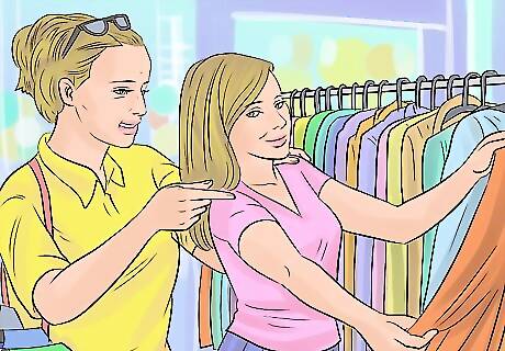 Go shopping for clothes with your teen. Another way you can set guidelines around your teen’s fashion choices is to go shopping with them. Suggest a shopping date where you give them spending money or have them bring their own money to spend. Be willing to take your teen to where they’d like to shop and give feedback on outfits they choose. Do not try to control where they shop or what they buy. Instead, give your input and only put your foot down when absolutely necessary. For example, your teen may want to shop at a trendy boutique at the mall. They may go for clothing that you find appropriate as well as a few items you think are inappropriate. Suggest that they buy more of the appropriate items and try to convince them to only buy one inappropriate item. This way, you limit them without having them feel you are being too controlling.