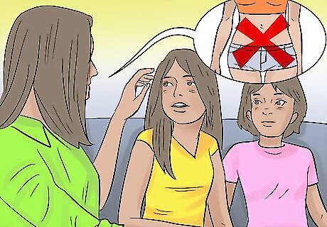 Set limits for your teen early. One way you can help guide your teen’s fashion choices a bit more is to set limits around their wardrobe early. You may make suggestions on what your teen wears when they are younger in age and just starting to get into fashion. You may also help them get dressed when they are younger so you can encourage them to wear certain items of clothing and get them used to certain styles. This may make it easier for you to sway them on their fashion choices when they are older. For example, you may tell your teen, "It is not acceptable for you to wear your pants below your waist" or "I am not okay with you wearing clothing that show off too much skin." If you have more than one child, you should set the same limits for all of your children so there is no preferential treatment. Having the same guidelines around clothing for everyone in your household can make it easier for you to enforce the same limits.