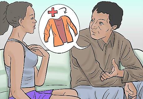 Compromise with your teen. Your teen may not be very open to your suggestions on their wardrobe and that is their right. Trying to control what they wear will only lead to more arguments and anger from both you and your teen. Instead, you may try compromising with your teen so you both get what you want in some way. This can also show your teen that you respect them and want to treat them like an adult. For example, if your teen does not want to change a low cut top, you may compromise and ask them to wear a sweater with the top so they are not showing as much skin. You may say, “How about you wear a sweater with that top and we’ll call it even?” or “Can you wear a sweater that that top? I’d feel much better about your outfit if you did that.”