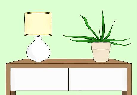 Set lamps or candles on the table for a cozier vibe. Harsh overhead lights aren’t exactly inviting, but it's important to make sure your entryway is well-lit to welcome guests. An antique lantern or accent lamp add a warmer glow to the room. Groups of candles are a more romantic lighting option. Candles aren’t the most practical. If you like the look, choose battery-powered candles that you can easily turn on instead of having to find the lighter. Light bulbs make a difference. Make sure you have enough light in your entryway for your guests to be able to see around them. For a golden glow, look for bulbs that are 2,700 Kelvins or less. Avoid any labeled as “cool white.”