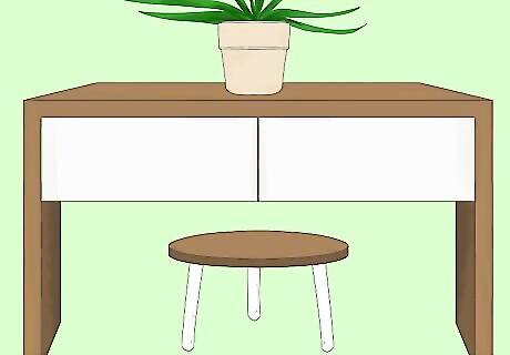 Slide a bench or stools underneath the table if there’s open space. A seating option allows guests the chance to sit while taking off their shoes or to wait for a ride when they’re leaving. Choose a plush cushioned bench, 2 to 3 low stools, or a basic wooden bench. Look for one that complements the table, whether it matches or provides an interesting contrast. For example, if your table is made from natural wood, metal stools create an industrial-chic feel. Ottomans double as seating and storage and can easily be slid under an entry table. They come in all different materials from canvas to rattan. If you don't have room to slide anything under your table, set a dining room chair or an accent chair to the side.