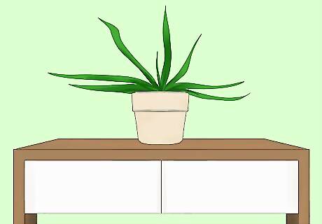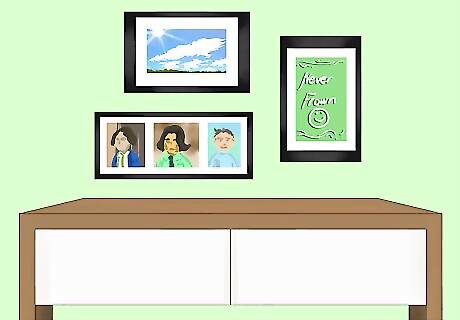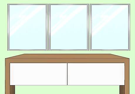 Hang a mirror above the table to brighten up the entryway. It will reflect natural light from any nearby windows into the space, making a small foyer look bigger. A mirror by the door also lets you fix your hair or makeup one last time before you head out the door. An oval mirror with an intricate border adds a shabby chic touch while a frameless square mirror looks more contemporary. Placing 3 rectangular mirrors side by side fills a larger wall. Leaning a mirror against the wall or setting a small standing mirror on the table has the same brightening effect.