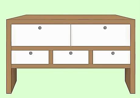 Tuck baskets underneath the table to store shoes out of sight. Pick bins or baskets that are big enough to hold multiple pairs of shoes. Open baskets are easier to toss shoes into when you walk in but baskets with lids are better for hiding them. Match your baskets to your decor, whether that’s a classic white wicker basket for a beachy vibe or a metal crate for an industrial feel. You can use one long and low basket or place 2 to 3 taller, chunkier baskets under your table. A shelf underneath the entry table can be used as a shoe rack. Line your baskets with fabric or a basket liner to prevent them from getting ruined by dirt or water that’s on the shoes.