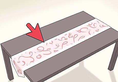 Use table runners and lace doilies. Drape table runners over the tabletops before you set things down, such as flowers and candles. You can also use doilies instead. For example, a large, glass vase filled with red roses would look romantic set atop a large, white, lace doily. If your table runner is plain, you can paint hearts onto it using stencils and red or pink fabric paint. You can also dress up a plain table runner by gluing down some wide lace down the center. If the runner is narrow enough, you might be able to place it on your fireplace mantle.