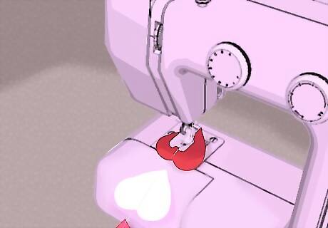 Sew a garland. Cut hearts out of red, pink, and white felt. Place red thread in your sewing machine. Sew the hearts across the center, from top to bottom. Feed hearts into the sewing machine, one after the other, until they are all included on one long piece of string. Back stitch at both ends to ensure the thread doesn't unwind. Hang it with tacks in a doorway, or lay it across a table.