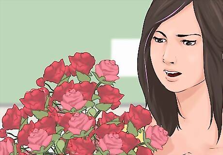 Use lots of flowers. Nothing says romance and love like flowers, especially roses. Red roses are the most popular, but pink and white roses are also suitable. You can also use carnations and daisies as well. Arrange the flowers in glass vases. Baby's breath and fern leaves make great fillers. For a fancy dinner, tuck a single rose into each napkin ring, along with a white napkin. Red roses make perfect gifts for romantic partners. Pink and white roses make great gifts for sons, daughters, mothers, and fathers. If you don't want to use flowers, get a pack of fake rose petals from an arts and crafts store instead. You can usually find them in the wedding aisle. Scatter the petals across tables or fireplace mantles. You can also place them in a bowl.
