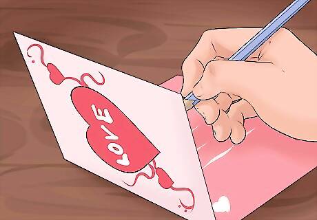 Make some Valentine's Day cards for your loved ones. Use cardstock, lace doilies, and glue to layer a heart design. Color the card with colored pencils, markers or crayons. When you are done, you can pin the Valentines to walls or windows for decoration.