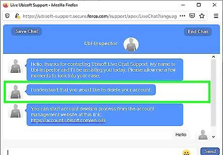 This wikiHow will teach you how to contact Ubisoft support to request that your account be deleted. There is no way to delete your account without help from an Ubisoft representative. Before you get started, understand that deleting your account will permanently deactivate your logins, active games, and keys.
