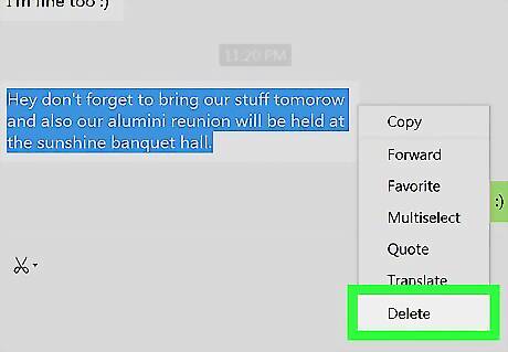 Right-click the message you want to delete. A pop-up will appear. If your computer doesn’t have a right mouse button, press Control as you click with the left.