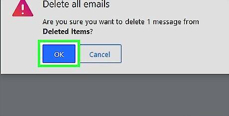 Click OK when prompted. This will confirm your decision and remove the emails from your Deleted Items folder.