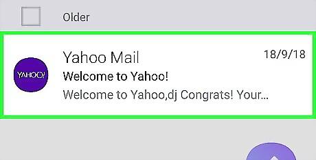 Open Yahoo Mail. Tap the Yahoo Mail app icon, which resembles a white envelope on a purple background. This will open your Yahoo Mail inbox if you're logged in. If you aren't logged into your account, enter your email address and password when prompted before proceeding.