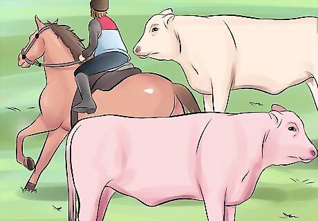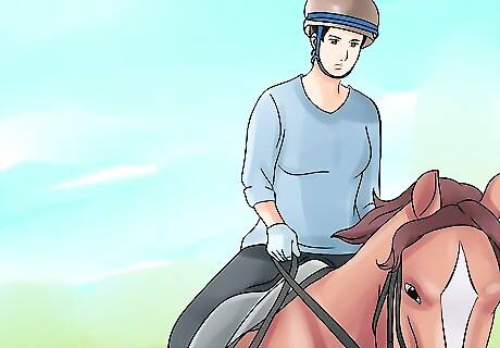 Ride past spooky objects near the end of a ride. Plan your route so you'll ride past stressful areas such as loud roads or cow fields on your way back home. If you spook the horse near the beginning of the ride, the experience will be more difficult and unpleasant for both you and the horse.