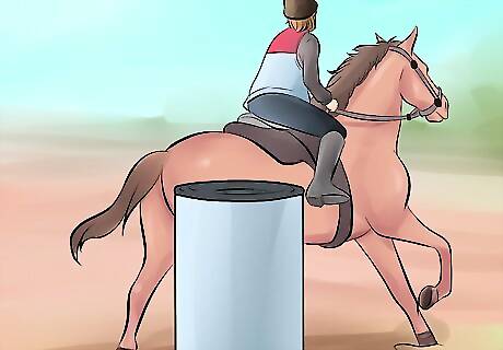 Move past the objects at a normal pace. Do not allow the horse to increase its speed to pass by the objects. Desensitization comes from repeat exposure in ordinary conditions, so the horse eventually realizes there is no real threat.