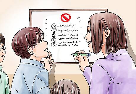 Show the children how to follow the rule. The first part of this is to role play. Pretend you are one of the children you teach and show them what you expect. The other part is to follow the rule yourself. If the children are not allowed to sharpen a pencil while you are talking to them, then you may not sharpen a pencil when they are talking to you.